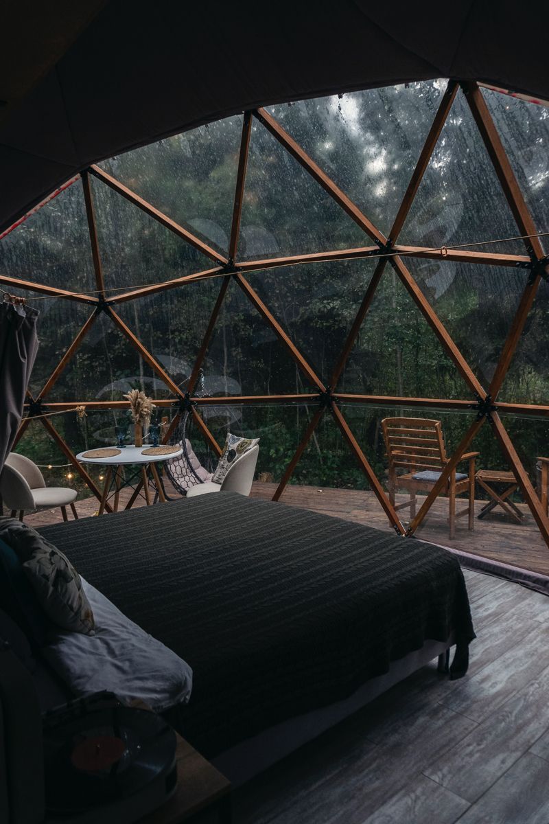 El domo es el corazón del espacio. Su geometría sagrada crea un entorno de contención y coherencia energética, favoreciendo la introspección, la meditación profunda y el trabajo interior. La luz natural que lo atraviesa, junto con el silencio del entorno, genera un estado de presencia y calma que invita a habitar el momento con plena conciencia. Aquí, el tiempo se desacelera y la energía se ordena.